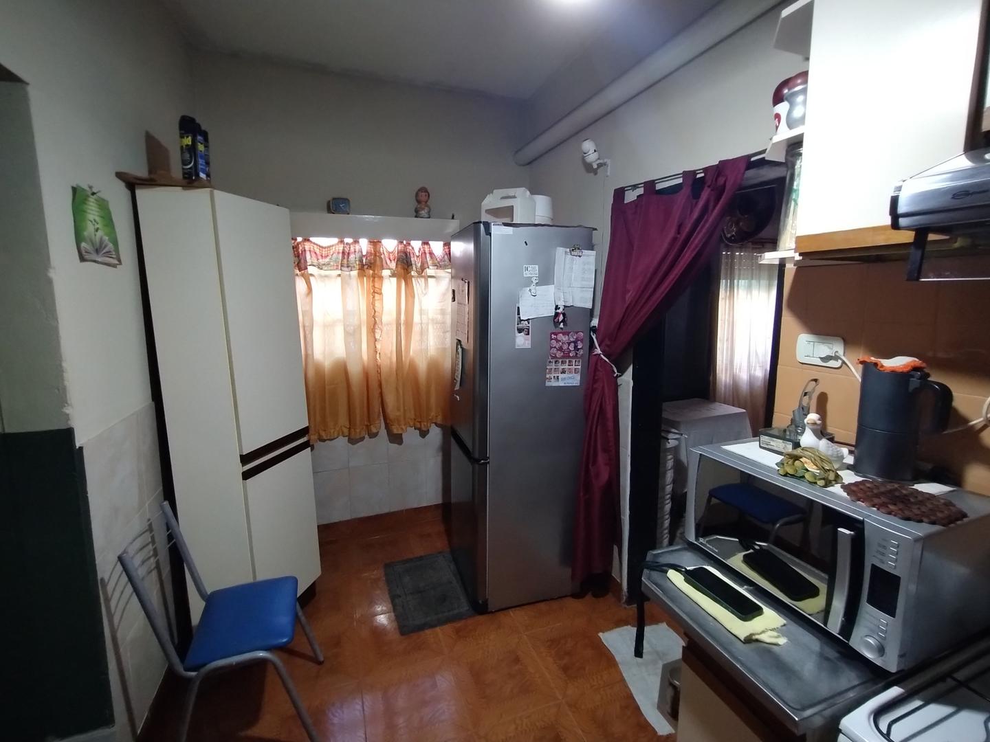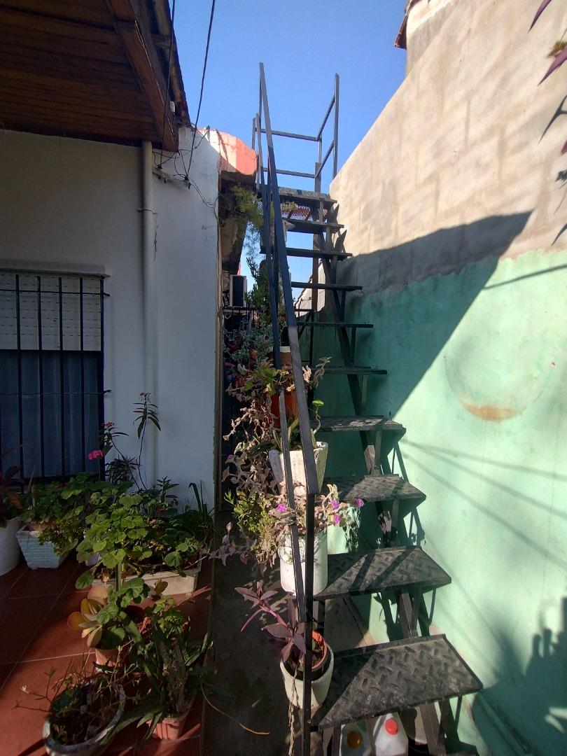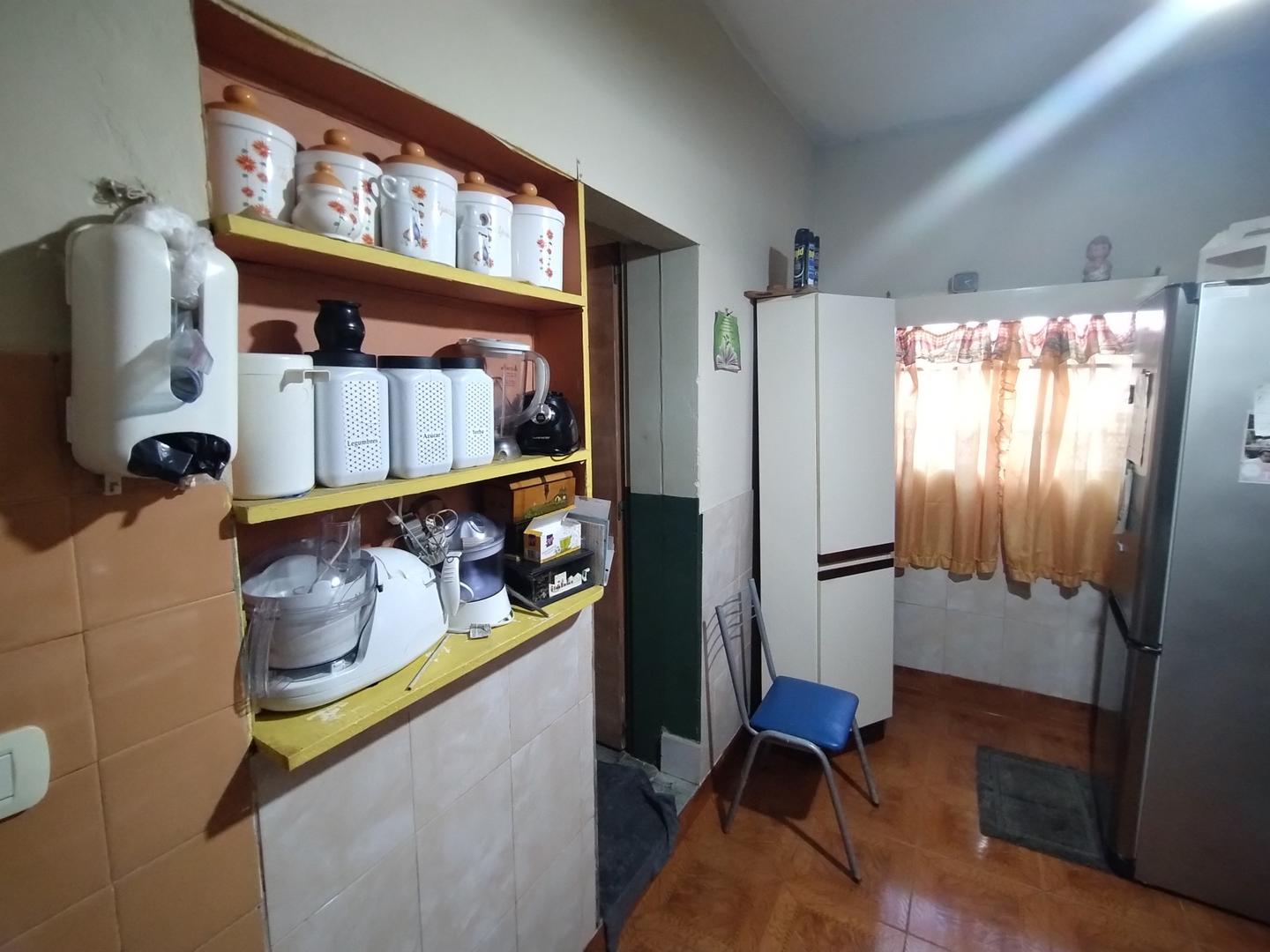 Frente con patio de 5,80x10 con entrada de coches, piso cerámica, una techo de zinc sin cielorraso, con dos portones de chapas buenos y muro de material, living comedor 4,30x6,30 parte piso mosaico veteado y resto cerámica con aire split, dormitorio al frente 4x3,60 piso mosaico veteado, con aire split, baño 2,90x1,80 con vanitory, espejo con luces, inodoro, bidet y ducha con separador, revestimiento cerámica pared y piso, dormitorio contrafrente 4,30x2,80 con baño en suite de 1,80x1,30 con vanitory, inodoro y ducha, piso cerámica con ventilador de techo, cocina 4,30x2 con mesada de aluminio de dos bachas, bajo mesada y alacena, otra cocina 3,40x4,80 con termo señorial a gas de 120 Lts con mesada sin mueble, alacena chica de dos puertas e instalación para lavarropa automatico, piso cerámica, techo de zinc con cielorraso de machimbre pintado, cuarto de enceres 1x1,50 piso cerámica, techo de zinc con cielorraso de machimbre pintado, amplio lavadero con mesada de dos bachas, pileta de lavar y parrilla, piso cemento, techo de zinc sin cielorraso, ambiente tipo pasillo techo zinc sin cielorraso 1,10x4,30 con puerta plegadiza vinílica (se puede utilizar como 3° dormitorio), escalera metálica buena con barandas para ingresar a la terraza.-