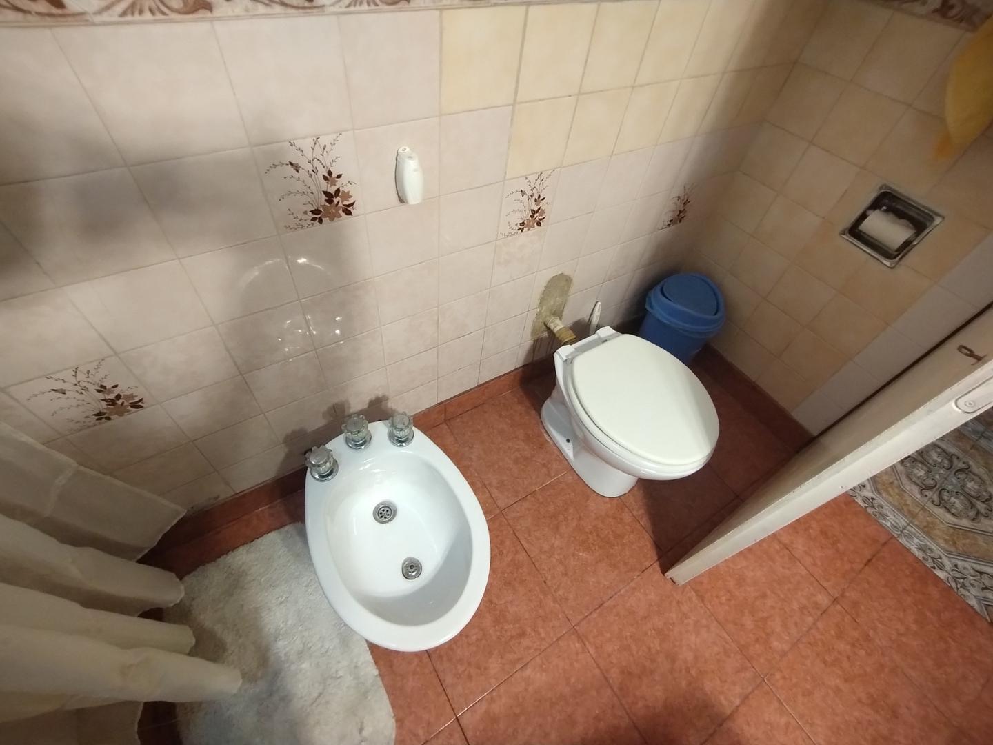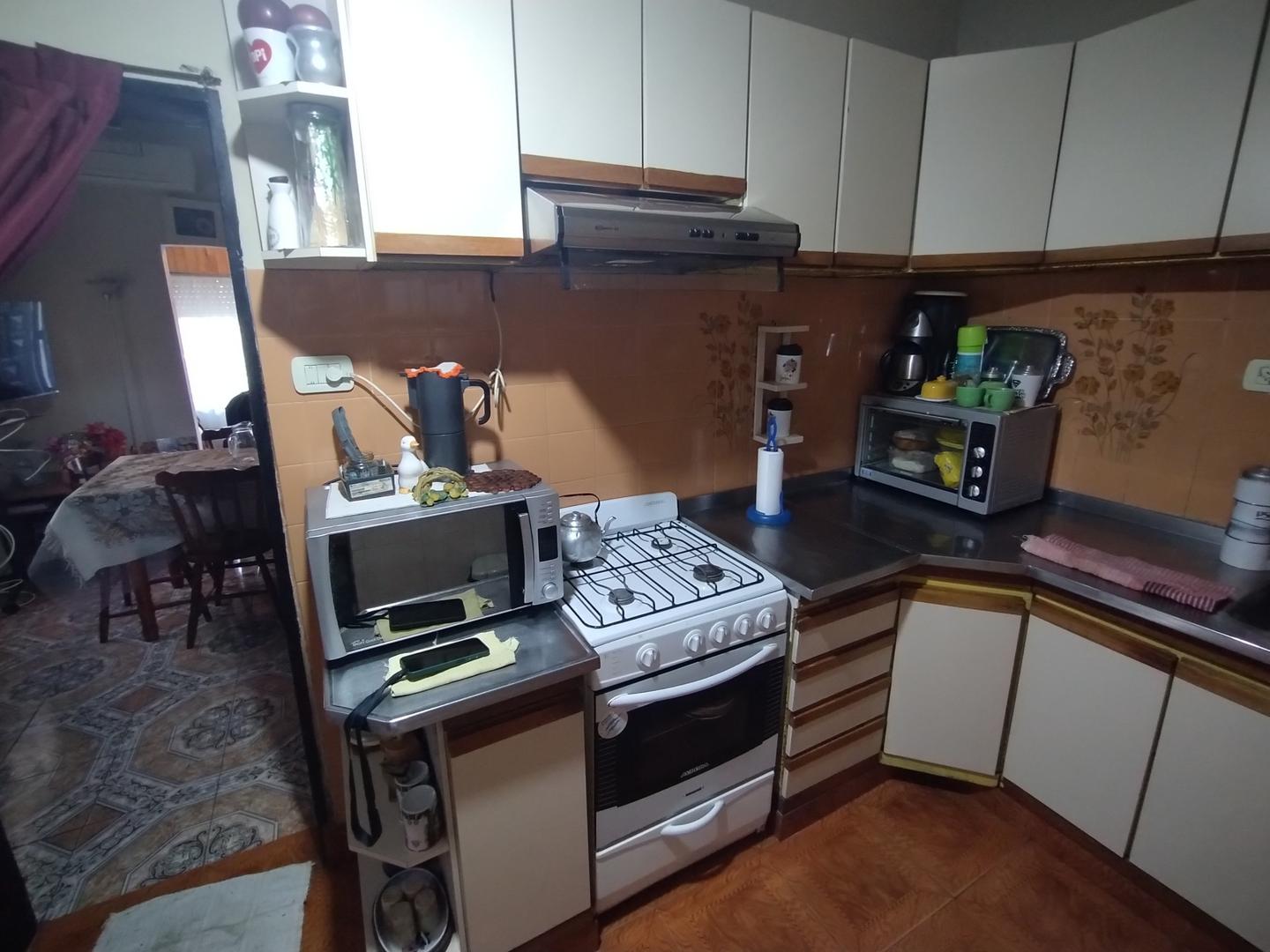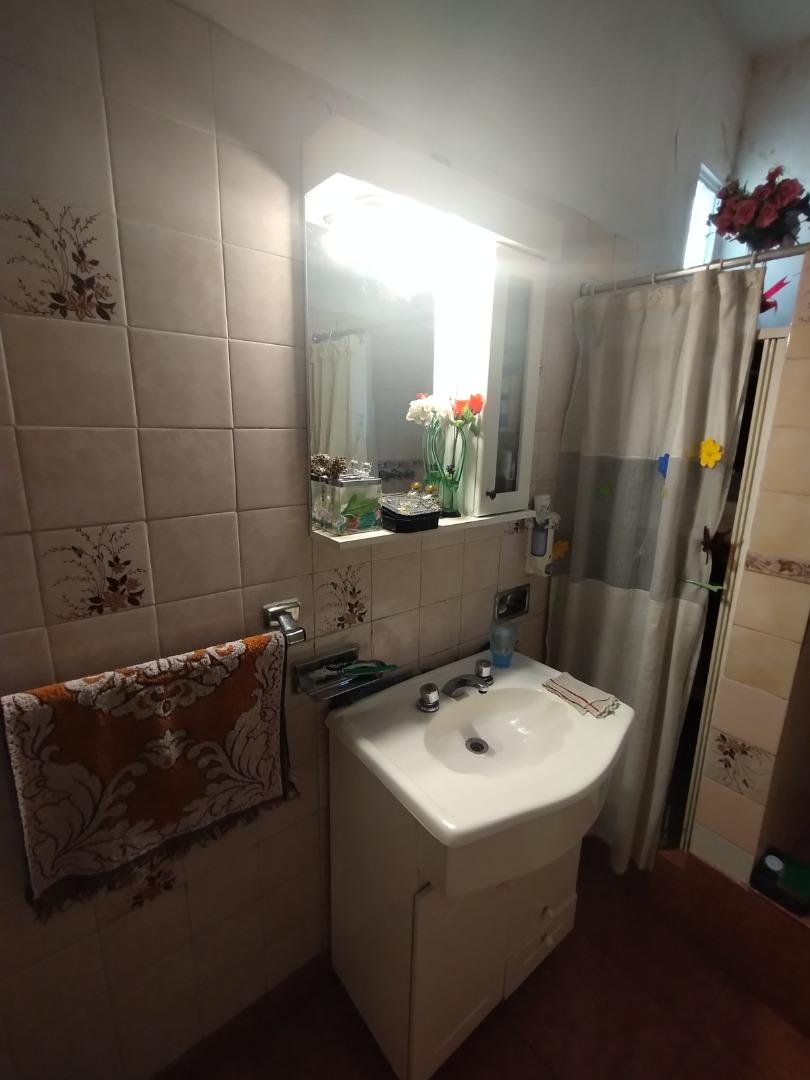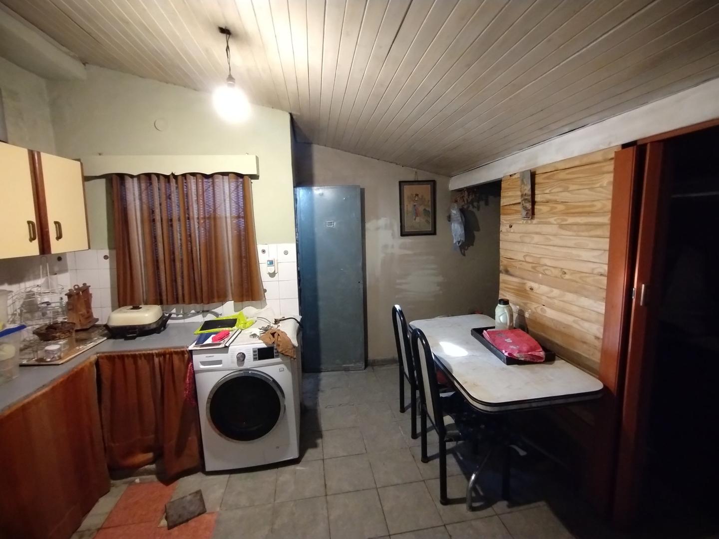 Frente con patio de 5,80x10 con entrada de coches, piso cerámica, una techo de zinc sin cielorraso, con dos portones de chapas buenos y muro de material, living comedor 4,30x6,30 parte piso mosaico veteado y resto cerámica con aire split, dormitorio al frente 4x3,60 piso mosaico veteado, con aire split, baño 2,90x1,80 con vanitory, espejo con luces, inodoro, bidet y ducha con separador, revestimiento cerámica pared y piso, dormitorio contrafrente 4,30x2,80 con baño en suite de 1,80x1,30 con vanitory, inodoro y ducha, piso cerámica con ventilador de techo, cocina 4,30x2 con mesada de aluminio de dos bachas, bajo mesada y alacena, otra cocina 3,40x4,80 con termo señorial a gas de 120 Lts con mesada sin mueble, alacena chica de dos puertas e instalación para lavarropa automatico, piso cerámica, techo de zinc con cielorraso de machimbre pintado, cuarto de enceres 1x1,50 piso cerámica, techo de zinc con cielorraso de machimbre pintado, amplio lavadero con mesada de dos bachas, pileta de lavar y parrilla, piso cemento, techo de zinc sin cielorraso, ambiente tipo pasillo techo zinc sin cielorraso 1,10x4,30 con puerta plegadiza vinílica (se puede utilizar como 3° dormitorio), escalera metálica buena con barandas para ingresar a la terraza.-